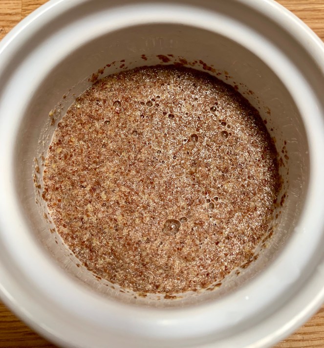 Make your flax egg by combining the ground flax seed with the water. Set aside for now.
